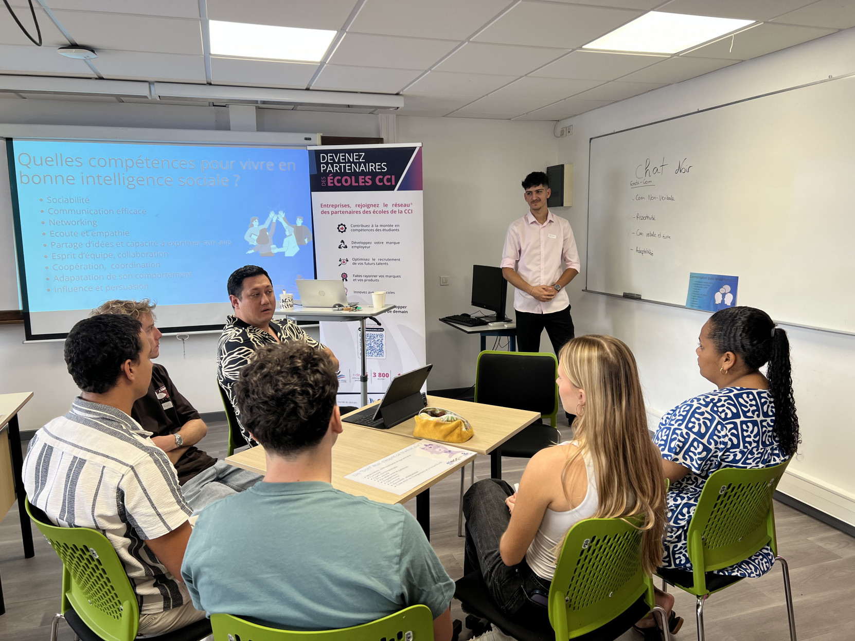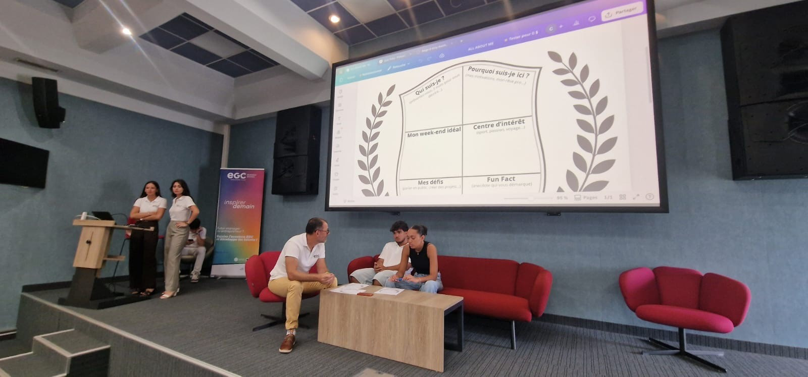 Les premières activités de cohésion, telles que la création d’un blason personnel représentant les valeurs et aspirations de chacun, ont invité les étudiants à se projeter dans leur parcours tout en apprenant à mieux se connaître. L’après-midi a été marqué par des mots de bienvenue de la direction de la CCI et du partenaire des 40 ans de l'EGC, la Société Générale NC, illustrant l’importance du lien entre l’école, ses partenaires et son environnement économique.