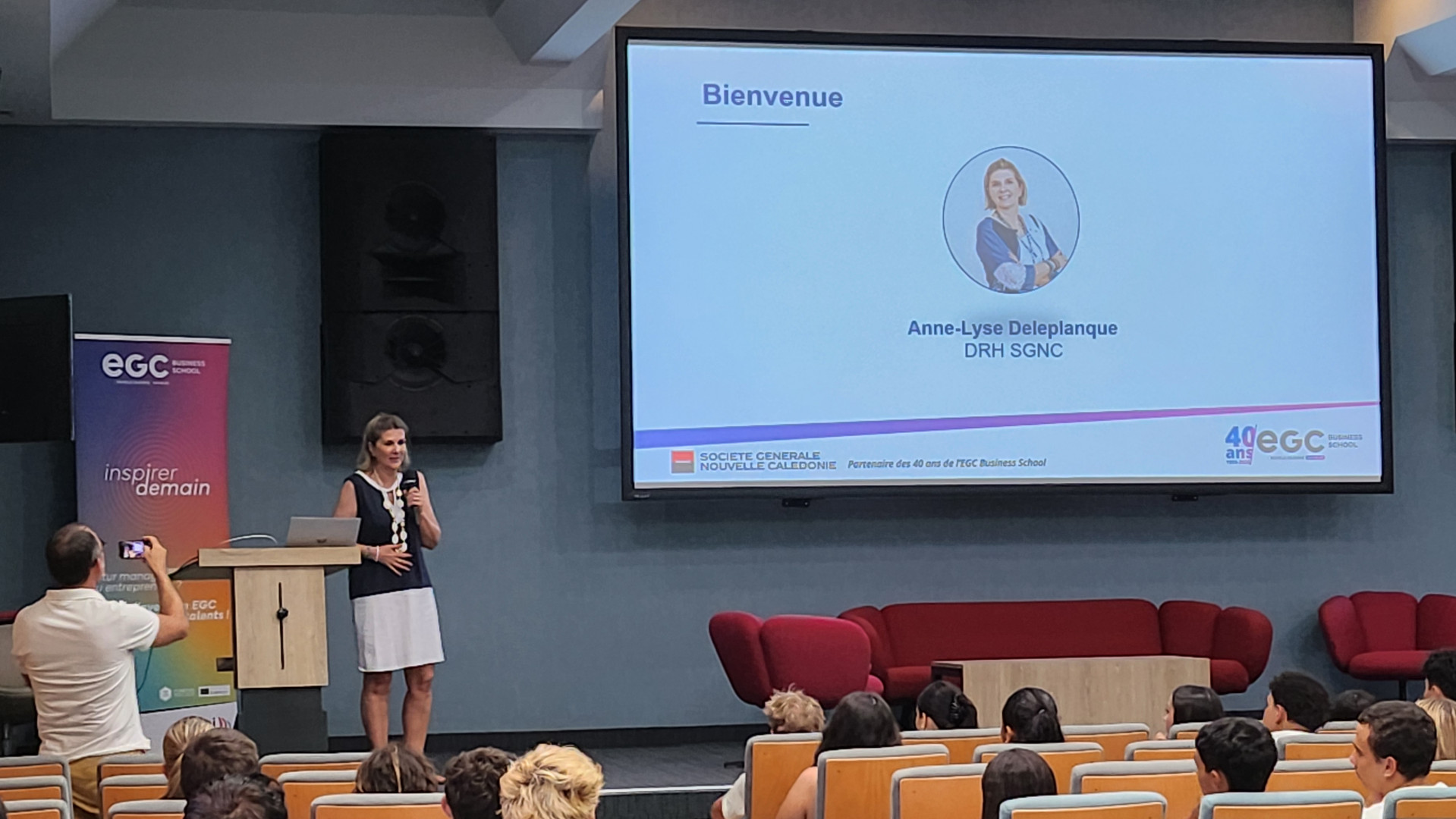 Anne-Lyse DELEPLANQUE, DRH, et Olivier GODEAU, Chef de projet organisation et responsable formation à la Société Générale Nouvelle-Calédonie – partenaire des 40 ans de l’EGC